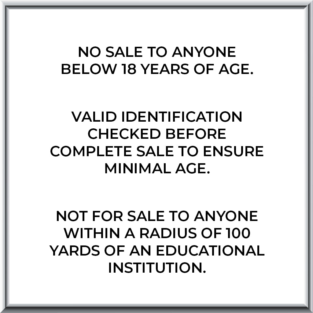 NOT FOR SALE TO ANYONE WITHIN A RADIUS OF 100 YARDS OF AN EDUCATIONAL INSTITUTION.